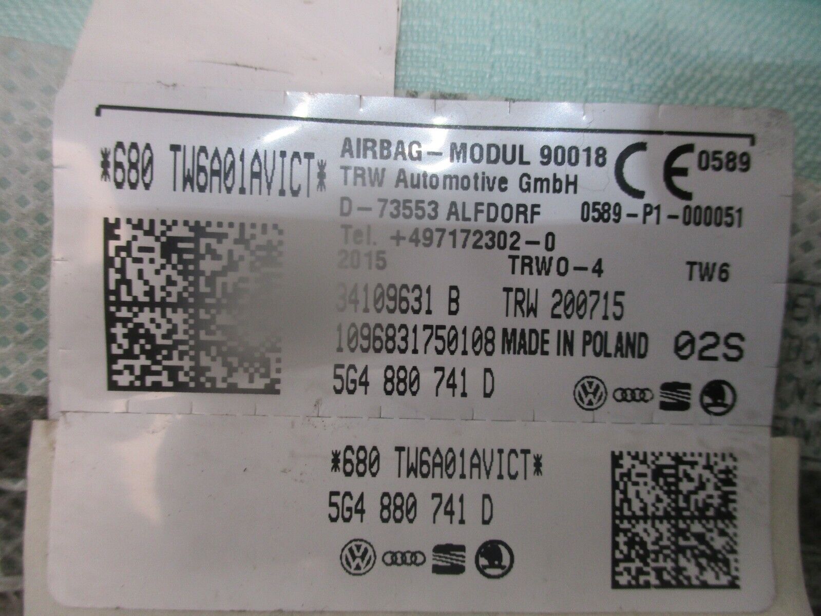2015 GENUINE VW GOLF MK7 FRONT LEFT PASSENGER SIDE CURTAIN ROOF BAG 5G4880741D